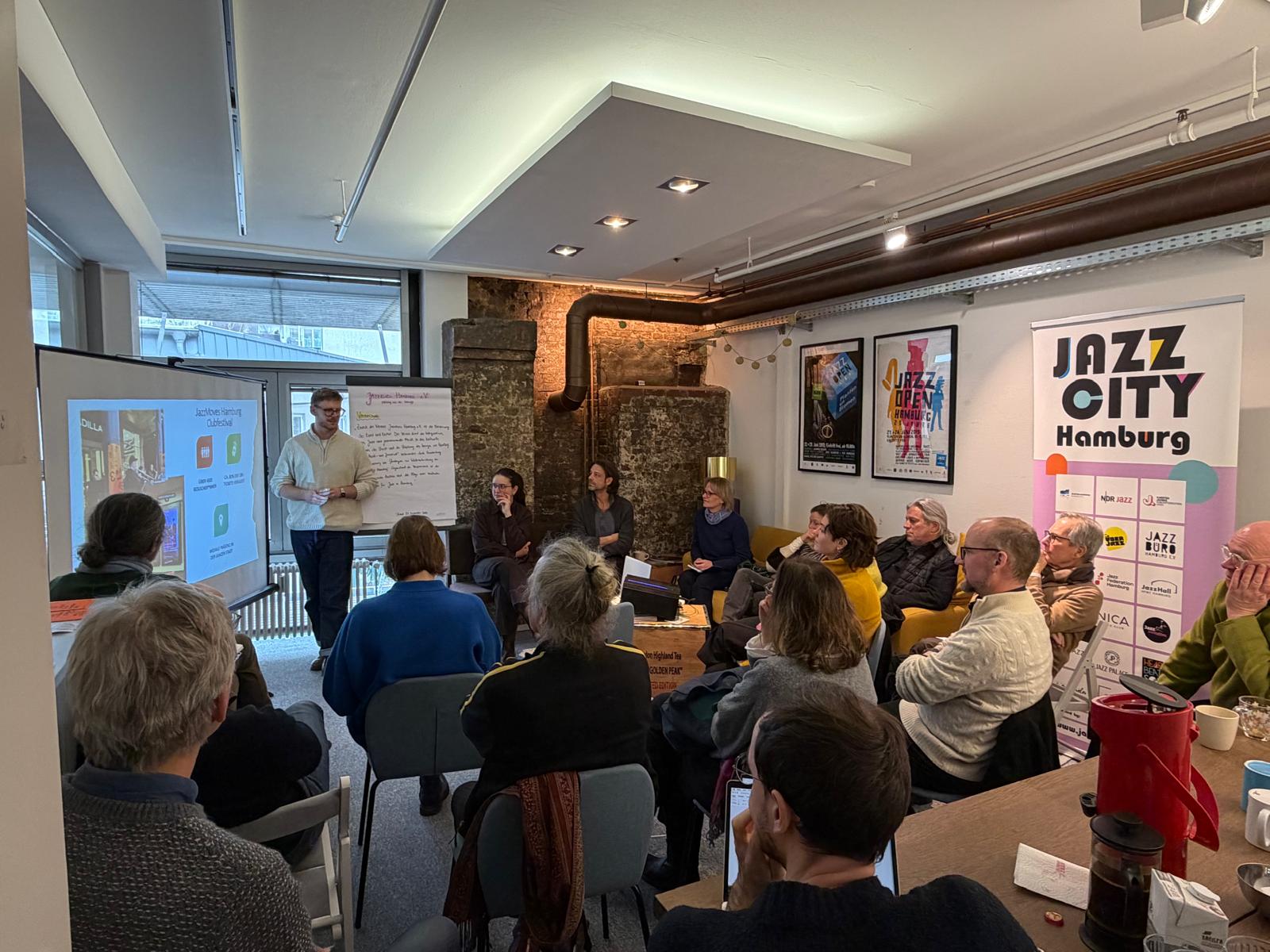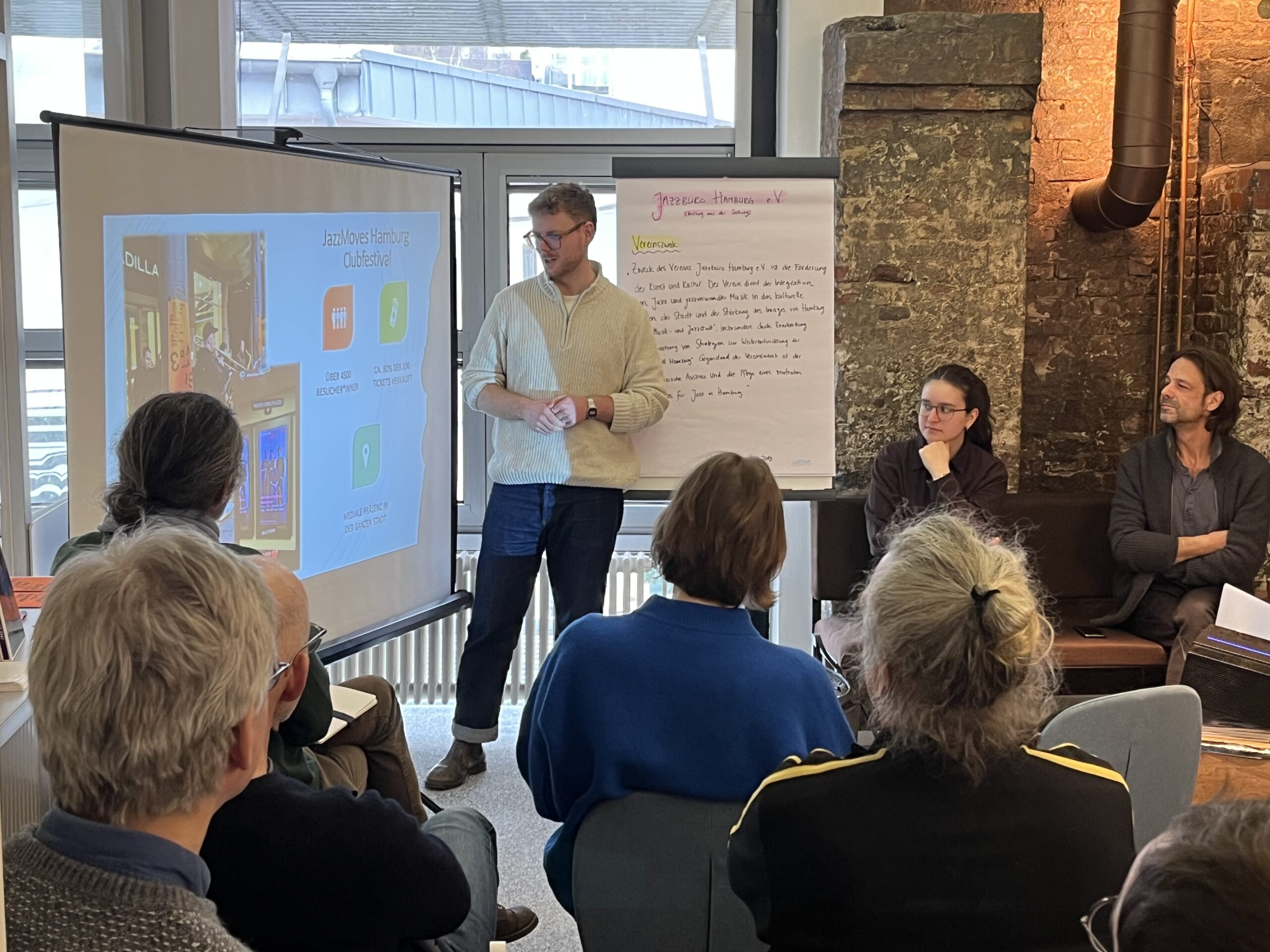Seit einem Jahr laden wir quartärlich alle Jazzveranstaltenden der Hansestadt zu unserem Jazz Together ein. Mit diesem Format wollen wir die künstlerischen Kurator*innen der Stadt näher zusammenbringen und den Austausch untereinander fördern. Zudem stellen wir den Vertreter*innen von Clubs und Konzertreihen die wichtigsten Themen aus unserer Arbeit vor. Natürlich können auch die Teilnehmenden drängende Fragen an das Jazzbüro adressieren.