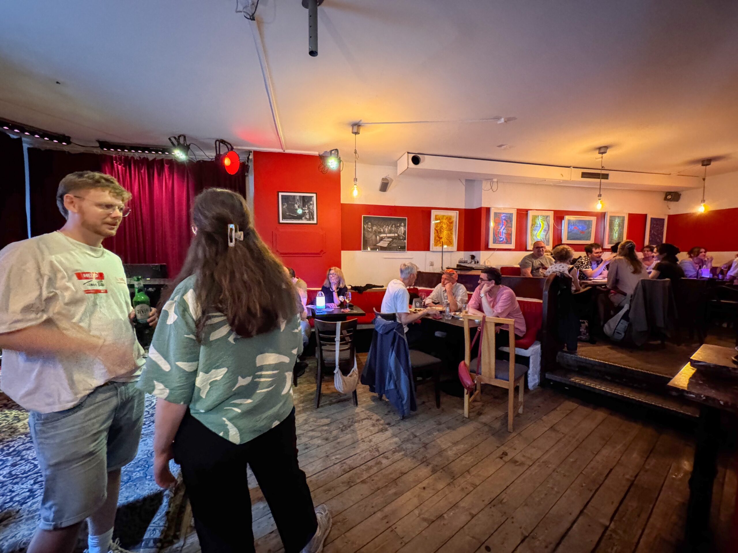 Beginnen wollen wir mit unserem Jazz Train aus Skandinavien oder besser gesagt aus Malmö und Kopenhagen. Eine Delegation von 15 Musiker*innen, Labels, Clubbetreiber und Booker kamen am 26. Juni nach Hamburg, um hier die hiesige Jazzszene kennenzulernen und sich zu vernetzen. Das Ganze wurde von Jazz Denmark, Musikcentrum Syd und dem Jazzbüro Hamburg geplant. Das Jazzbüro Hamburg lud ihrerseits Jazzkräfte aus Hamburg ein, so dass in Einzelgesprächen, Vorträgen und Workshops ein interessanter, spannender Austausch zwischen den 45 Teilnehmenden stattfinden konnte.