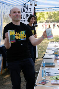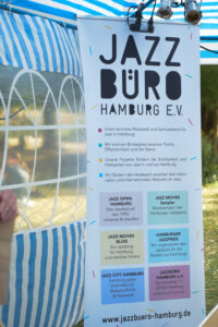 Am Infostand gegenüber der Bühne gibt es die Gelegenheit, die Arbeit des Jazzbüros kennen zu lernen, sich über die Hamburger Jazzszene zu informieren, einen Schnack mit den auftretenden Musiker*innen zu halten und ihre CDs zu erwerben.